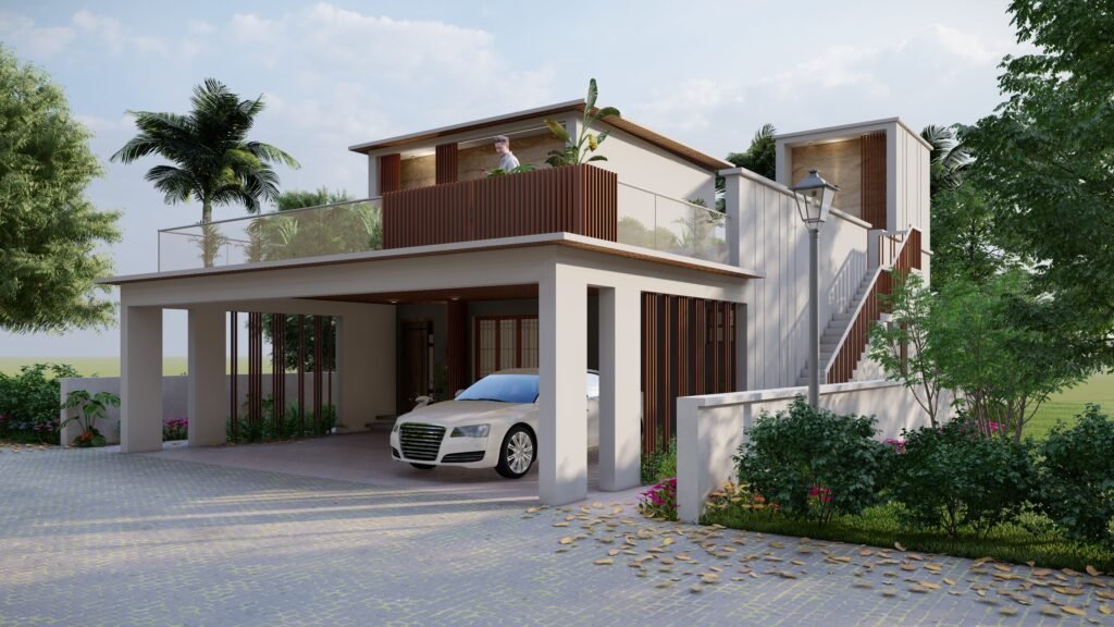 Indoor–Outdoor Integration — Covered patios, verandas, and outdoor kitchens with fireplaces or BBQ zones extend living space. Materials often carry seamlessly from inside to outside, enhancing the flow